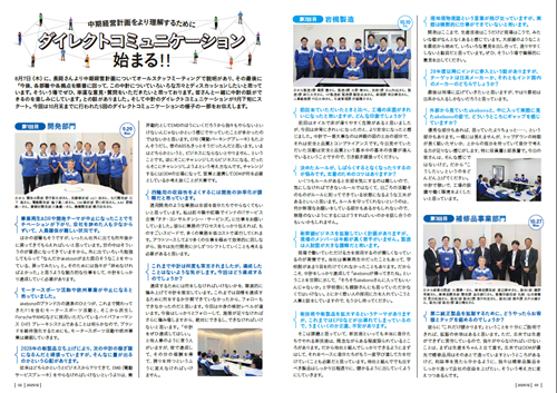 2025年12月号では、長岡社長と各部署・拠点の社員の皆さんによる座談会を特集。中期経営計画をより理解するための率直な意見・質問に対し、長岡社長より説明しました。また職場紹介企画では、部署のOne Team感を伝えるために多くの社員の方々の写真とコメントを掲載しています。ほかにも、Japan Mobility Showのルポやグループ企業の近況、社員の健康促進企画などを掲載しています。